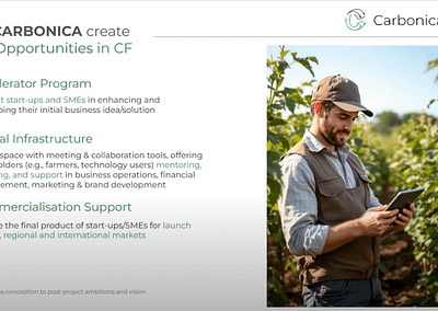 However, achieving success in this area depends on the synergy among all stakeholders within the Quadruple Helix model, which integrates science, policy, industry, and society. In this context, the CARBONICA project will connect the innovation ecosystems of Cyprus, Greece, and North Macedonia to foster collaboration and build their capacity as service providers. The project will also boost regional innovation by utilizing advanced technologies such as Earth Observation, in situ data, and digital agriculture. Ultimately, CARBONICA will provide stakeholders with access to excellence and strengthen regional innovation capabilities.