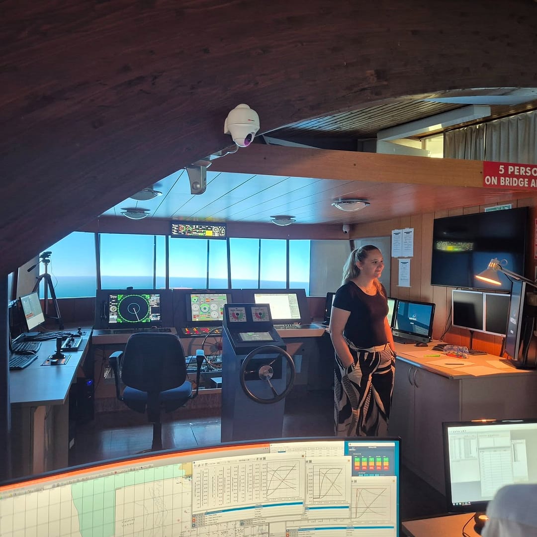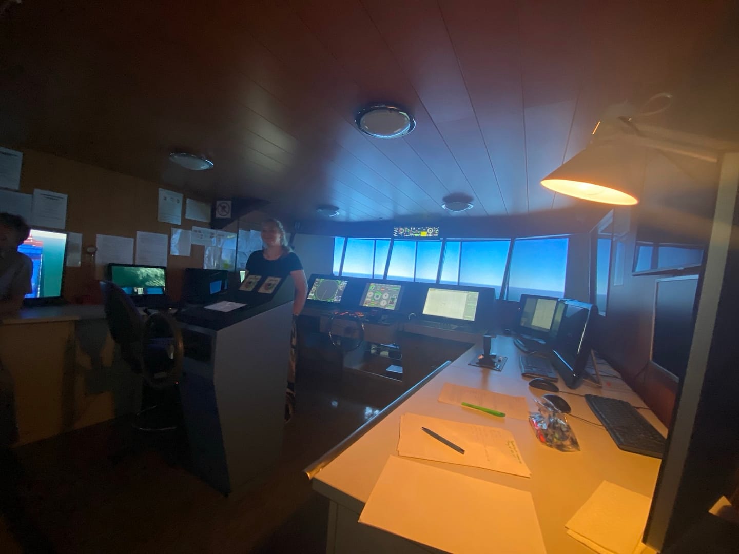 Next, we explored another impressive simulator lab — this one dedicated to ship bridge simulation and control.Here, we observed master’s students working on real-time research projects using a ship bridge emulator setup that closely mirrors actual ship operations. The immersive, highly realistic environment stood out as a highlight of the visit.