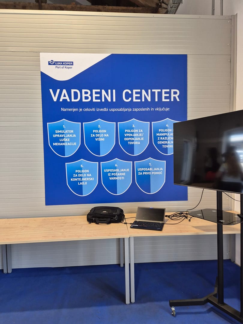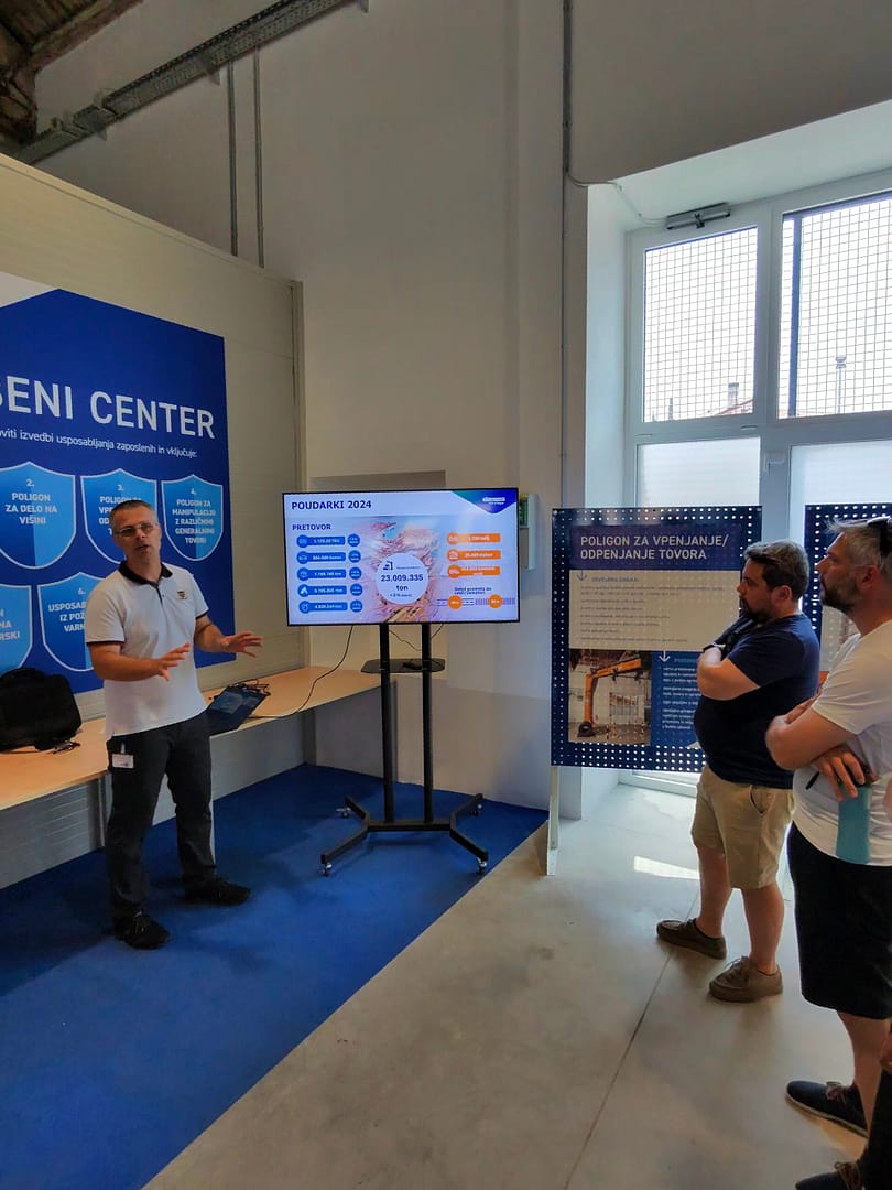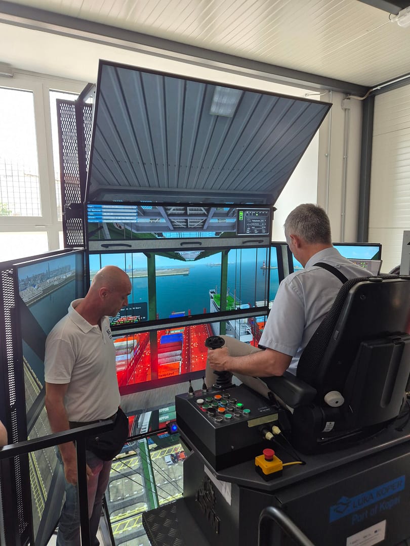 Following this, a guided bus tour through the Port of Koper provided access to essential operational areas. The itinerary included a designated stop for thematic discussions led by Mr. Mirnik. Participants also visited the port’s training center, where they experienced hands-on demonstrations of the port operation simulator—covering scenarios such as working at height, cargo securing and releasing, and handling various cargo types in specialized polygons.