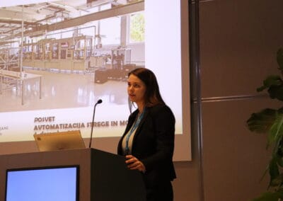 Slovenian companies and research organizations presented numerous practical examples, ranging from robotic welding and automated quality control to predictive maintenance, AI-enabled planning, and advanced 3D printing technologies.