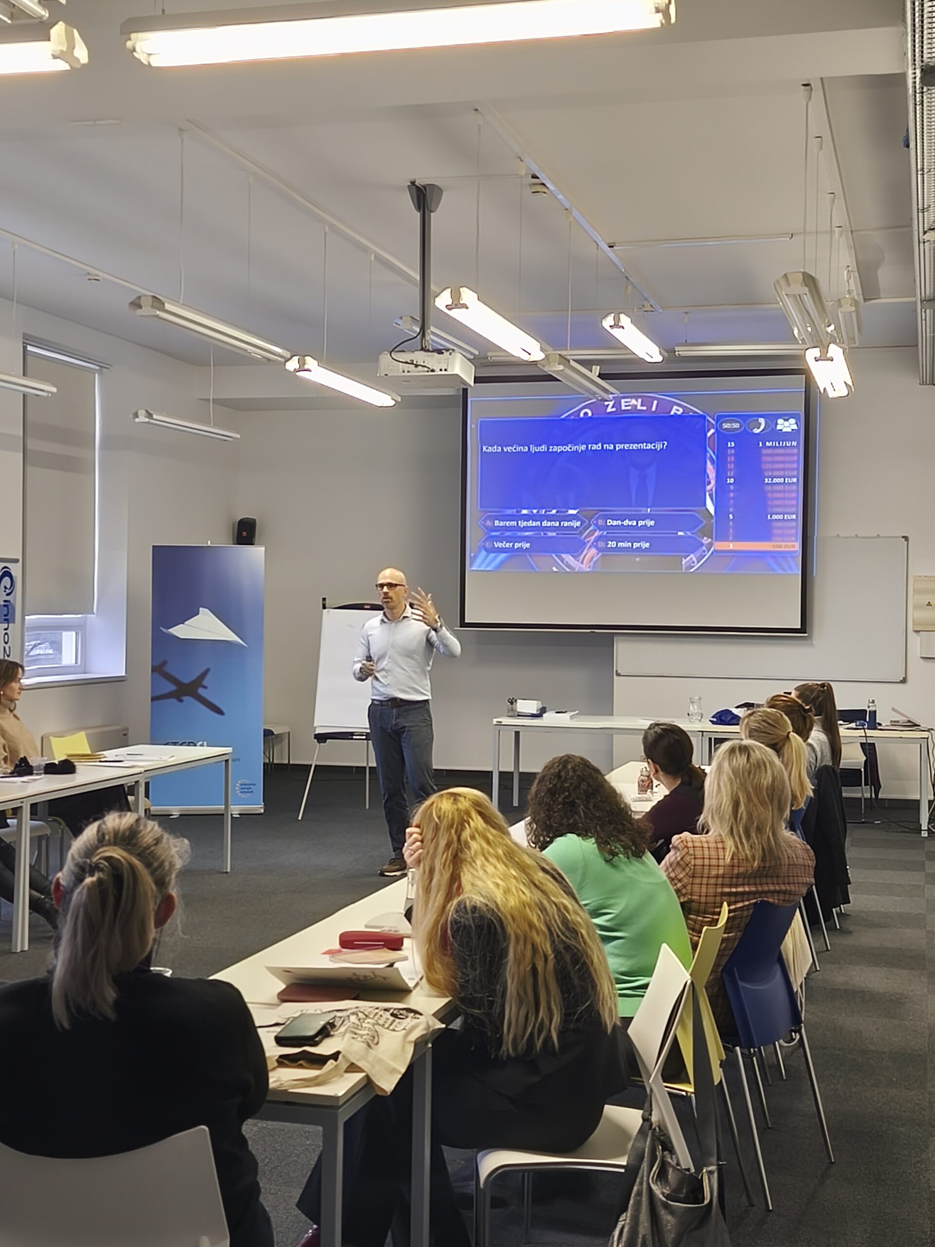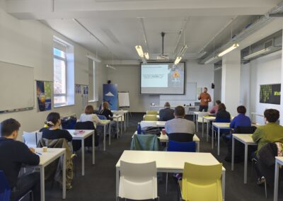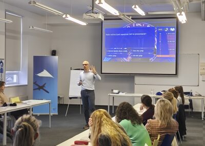 The first workshop, “How to prepare a presentation of a product, company, idea or project?” was led by presentation expert Luka Krejči. The workshop focused on the strategic preparation of presentation content rather than the technical aspects of slide design. Participants learned how to structure clear and persuasive messages, apply storytelling principles, visually communicate key information, and present data effectively when pitching ideas or projects to partners, investors or decision-makers.