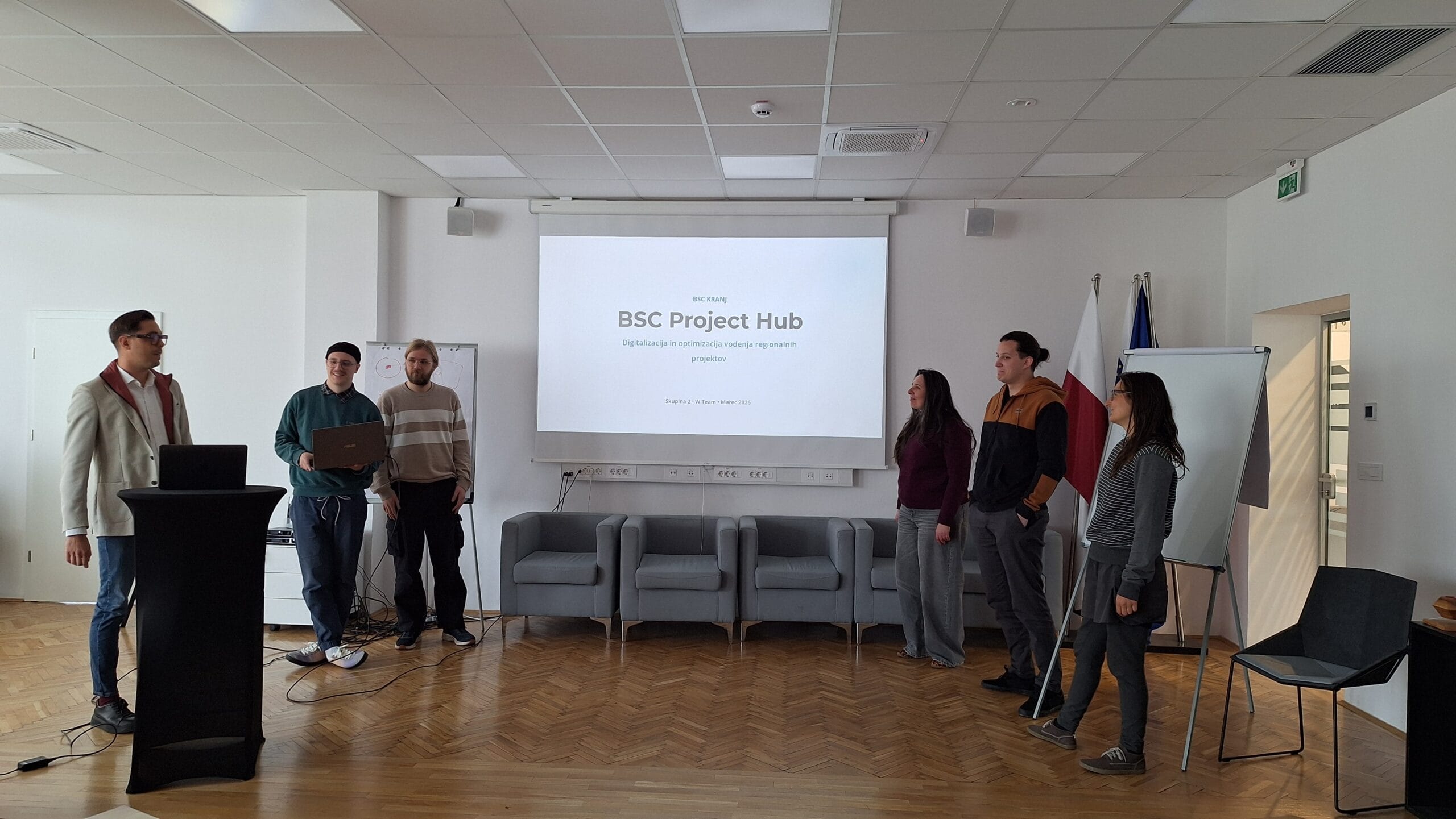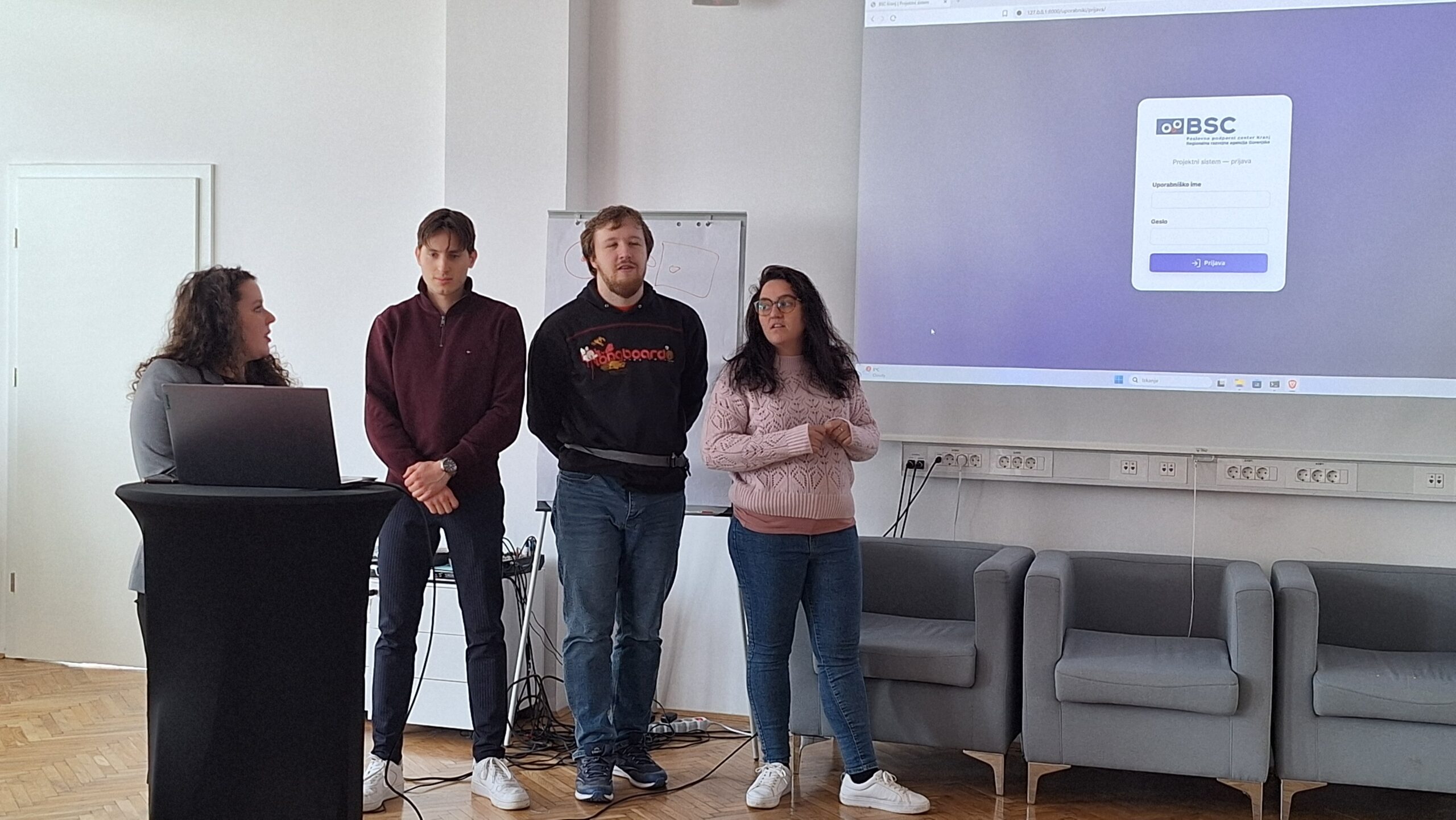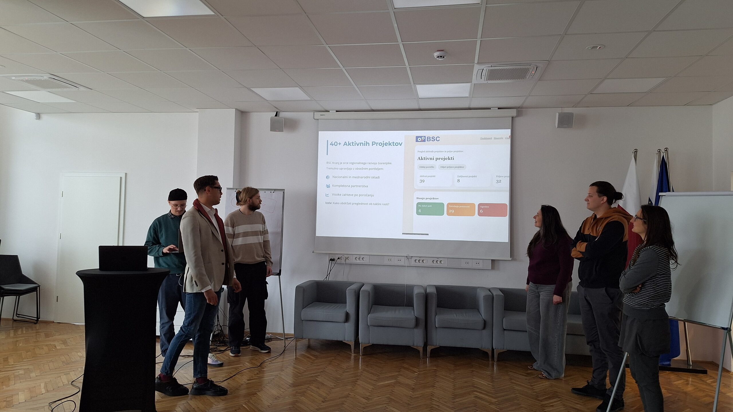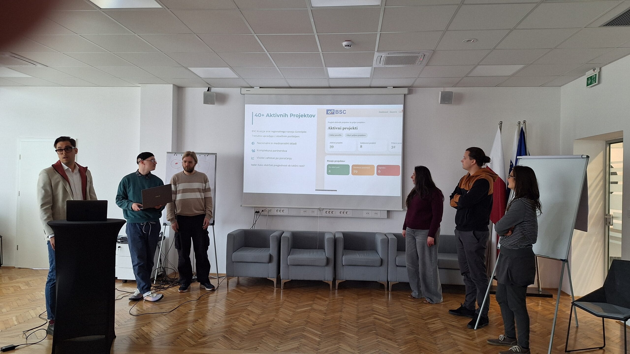 The first round of project presentations took place at the end of March at Kovačnica, the entrepreneurial incubator in Kranj. Participants developed applications aimed at improving project management processes within organisations, with a focus on transparency, early risk identification, and informed decision-making. The solutions demonstrated a strong emphasis on usability, efficiency, and innovation.