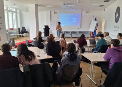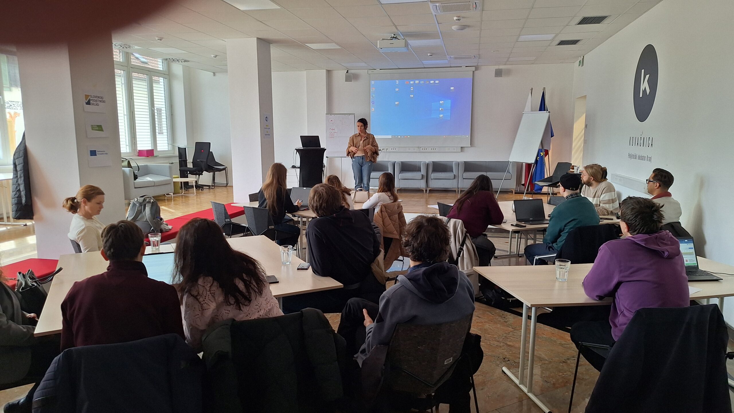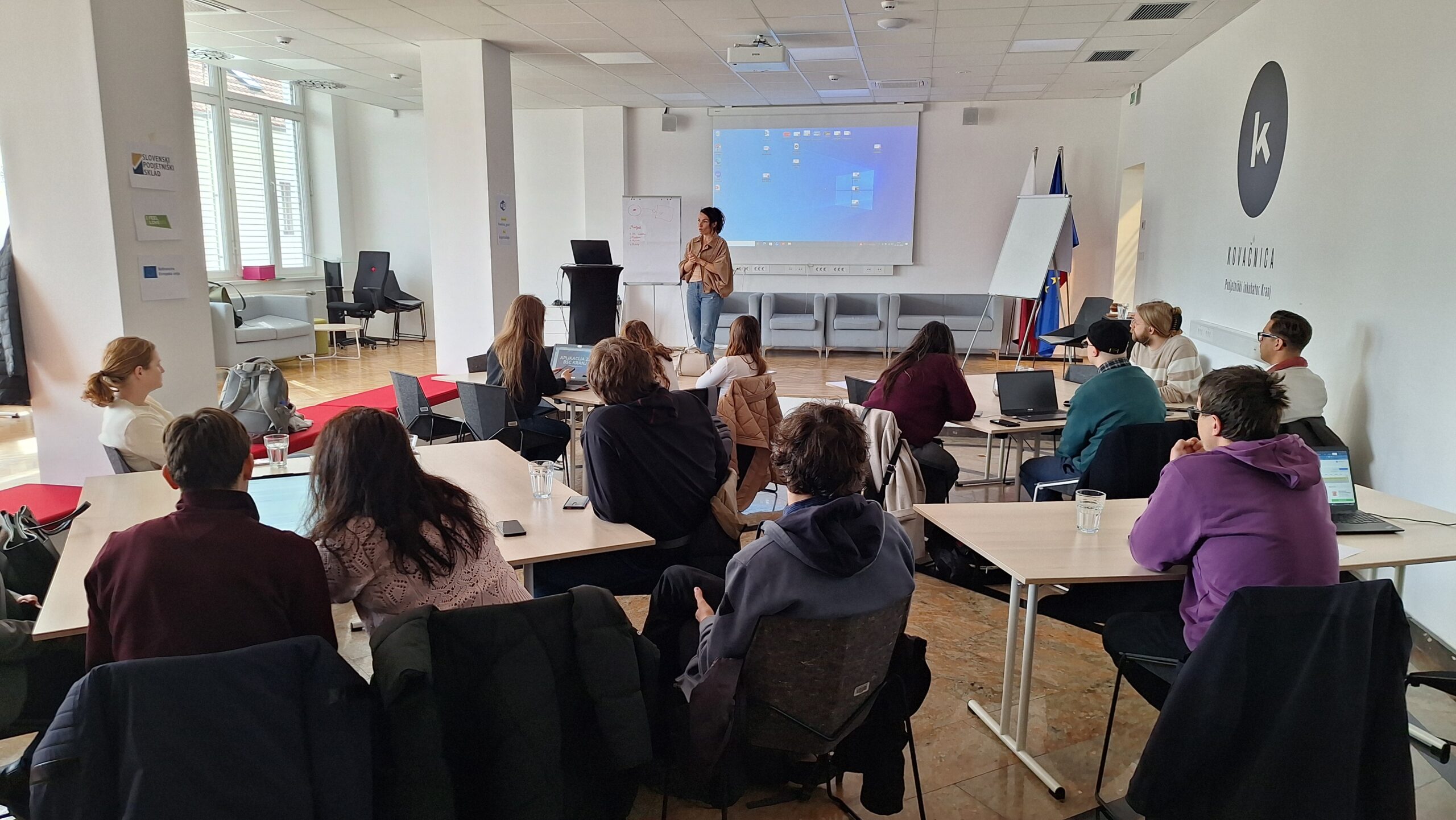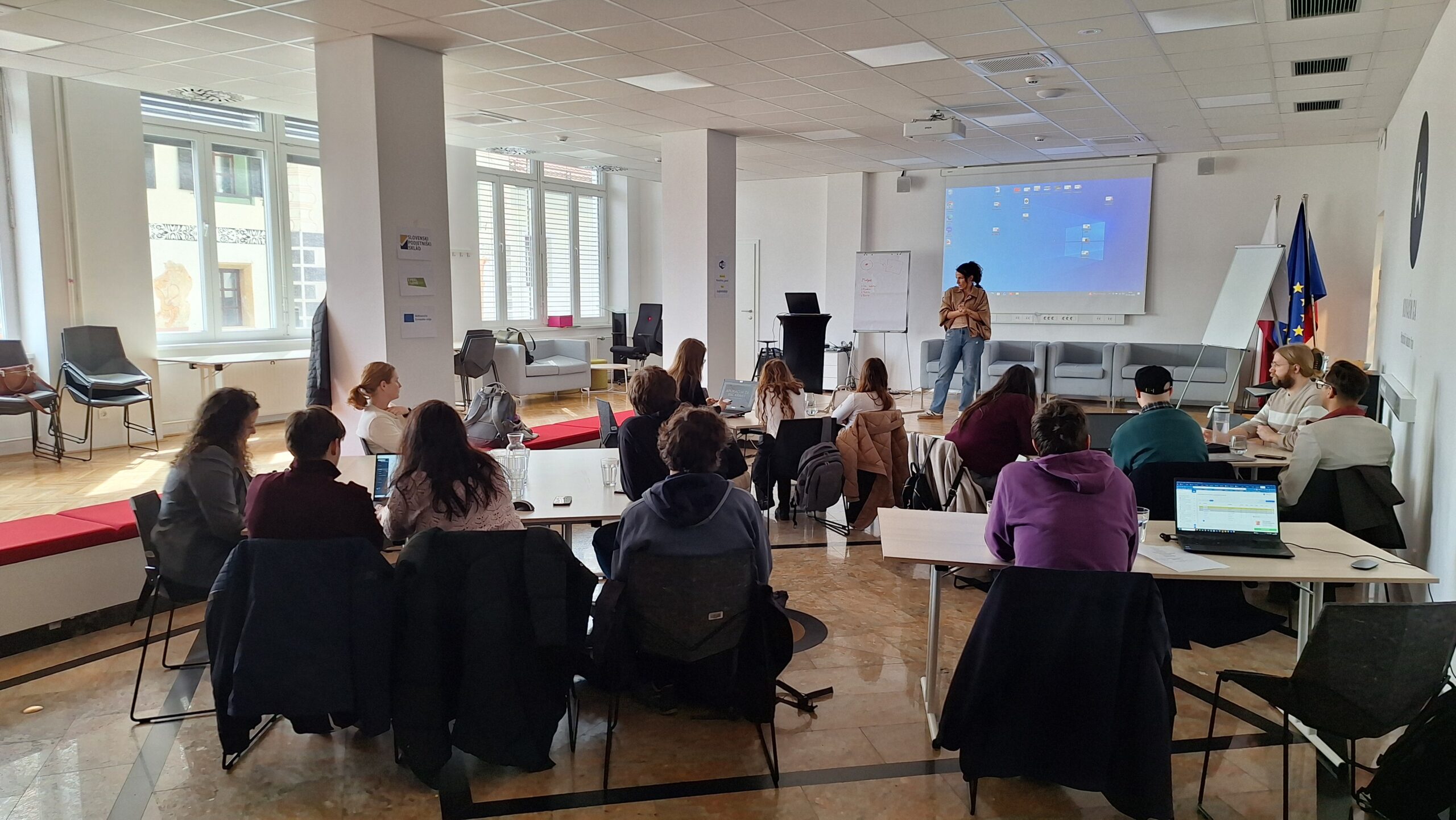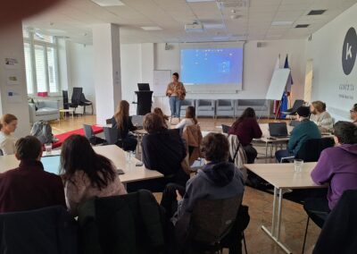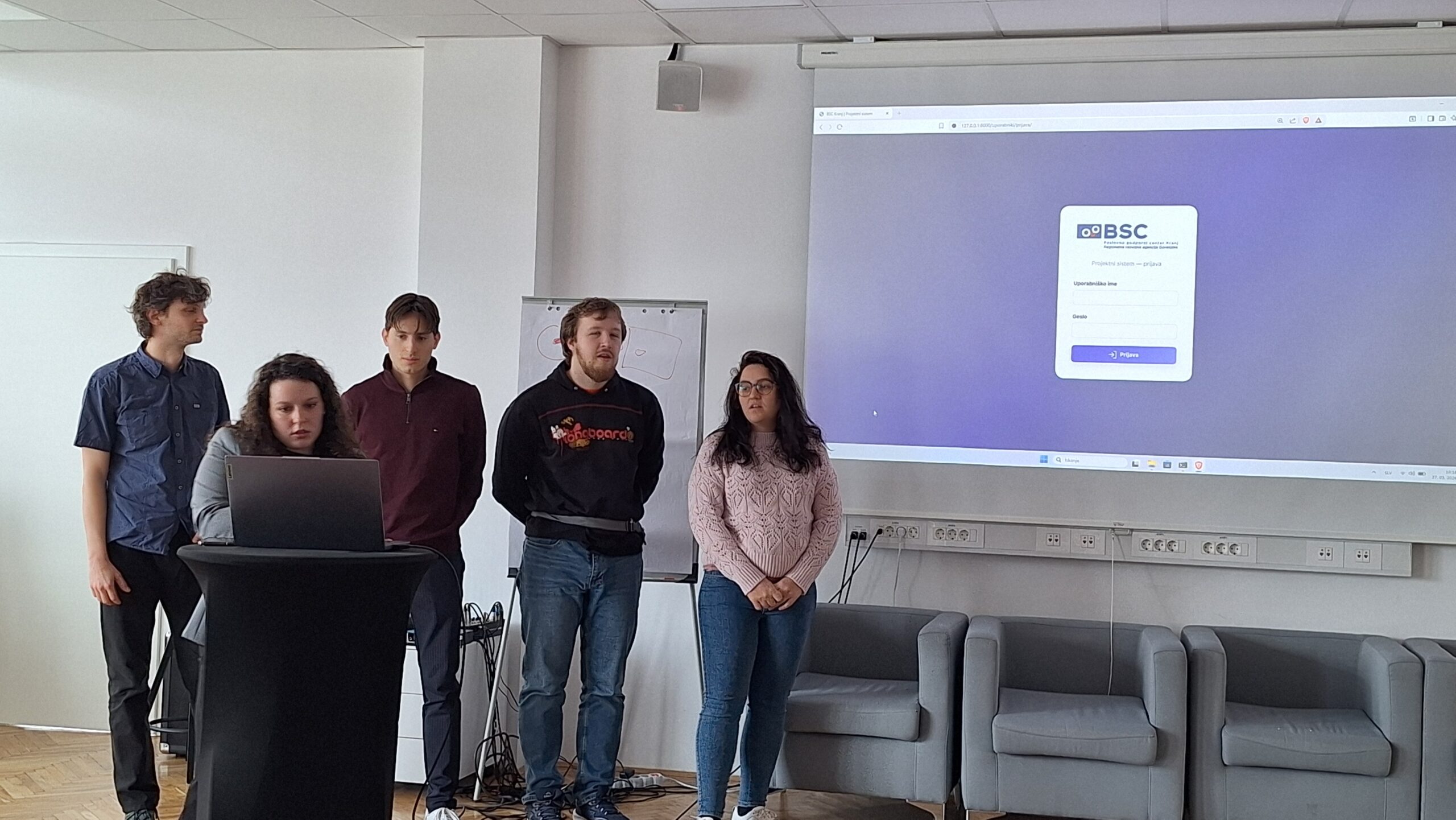 The first round of project presentations took place at the end of March at Kovačnica, the entrepreneurial incubator in Kranj. Participants developed applications aimed at improving project management processes within organisations, with a focus on transparency, early risk identification, and informed decision-making. The solutions demonstrated a strong emphasis on usability, efficiency, and innovation.